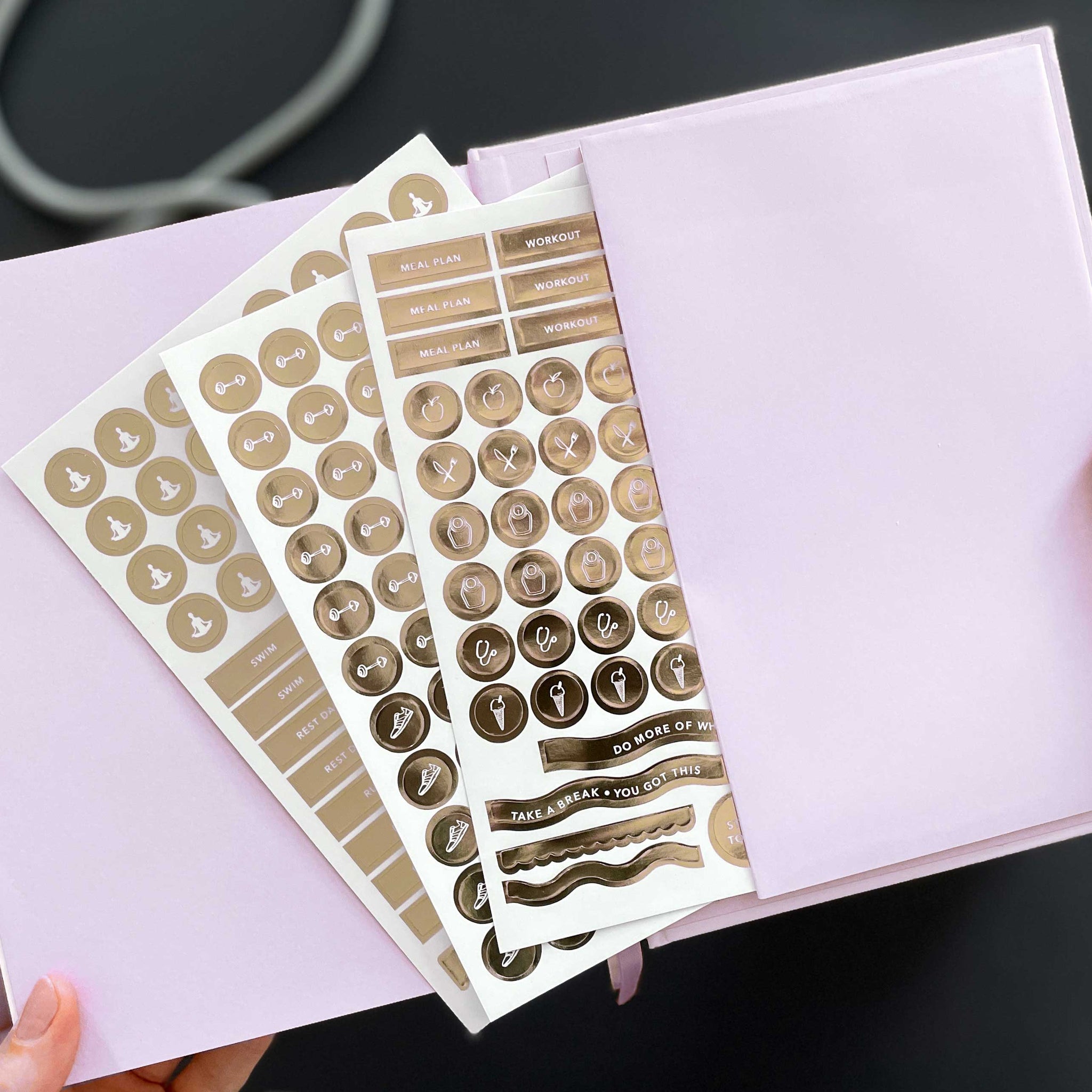 3 sivua kultaisia tarroja